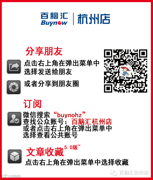 1、活动期间,关注百脑汇杭州店(微信号:buynohz)微信并分享该页面至朋友圈,即可参加抽奖(一定要把好活动分享给小伙伴们啊~);