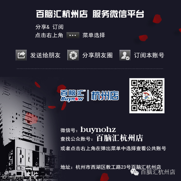 关注:关注百脑汇杭州店官方微信(微信号:buynohz);