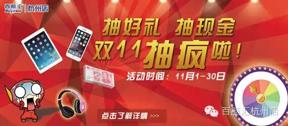 双11算什么,光棍又怎样! 百脑汇11月抽疯啦! 抽好礼,抽现金, 各路好礼洗白白坐等你们来抽~ 这么好的事,不抽是逗逼!