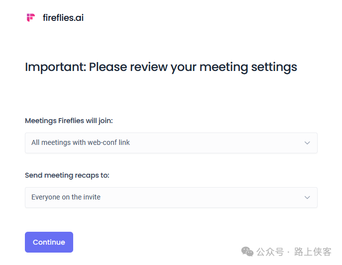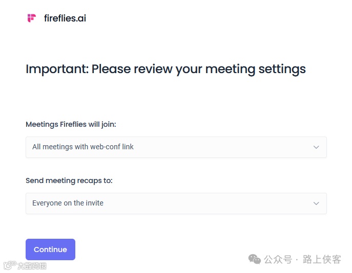 邀请参加会议将fred@fireflies.ai 添加到会议邀请中,或者为日历启用自动加入功能,这样Fireflies.ai 就能参与到会议当中 。