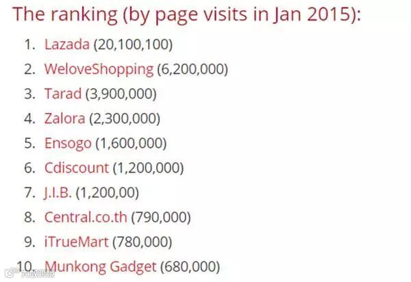 Tarad则属于电商巨头Rakuten,要知道2014年Rakuten销售收入达50亿美元。Cdiscount则属于Cnova,Cnova耶是全球大型电商之一,拥有1.36亿用户。Central.co.th则属于Central Group,Central Group的所有者是泰国最富有的家族。Ensogo则被LivingSocial收购,LivingSocial则是eBuy旗下的企业。Lazada是泰国第一家像亚马逊那样的大型全品类电商,Ensogo则是第一家团购网,Tarad则是泰国最古老的电商网站。
