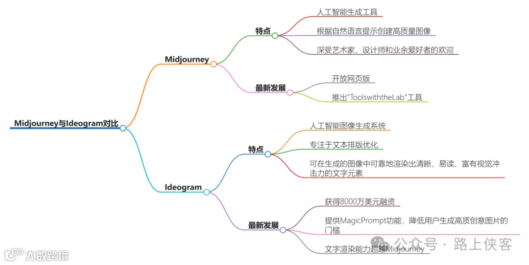 综上所述,Midjourney 和 Ideogram 都是领先的AI图像生成工具,各自在特定领域有着独特的优势。Midjourney 在绘画和图像生成方面表现出色,而 Ideogram 则以其在文本嵌入和处理方面的卓越性能而闻名。随着两者的不断发展,它们之间的竞争也将更加激烈。