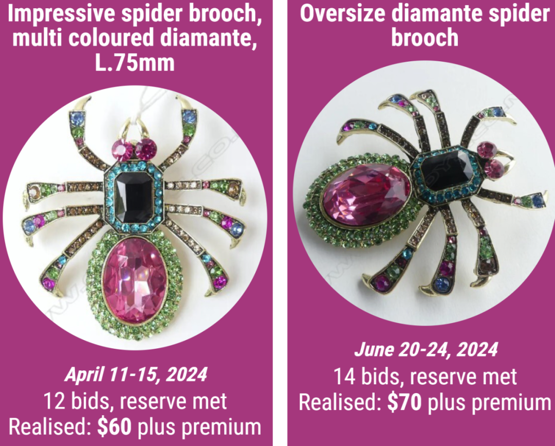有网友爆料,奥克兰一女子在Cordy's拍卖行以70纽币的最高出价拍得“超大钻石蜘蛛胸针”。几天后她在购物网站TEMU上,看到了与自己拍卖来的胸针简直一模一样的版本,价格约6纽特。这让她气愤不已。