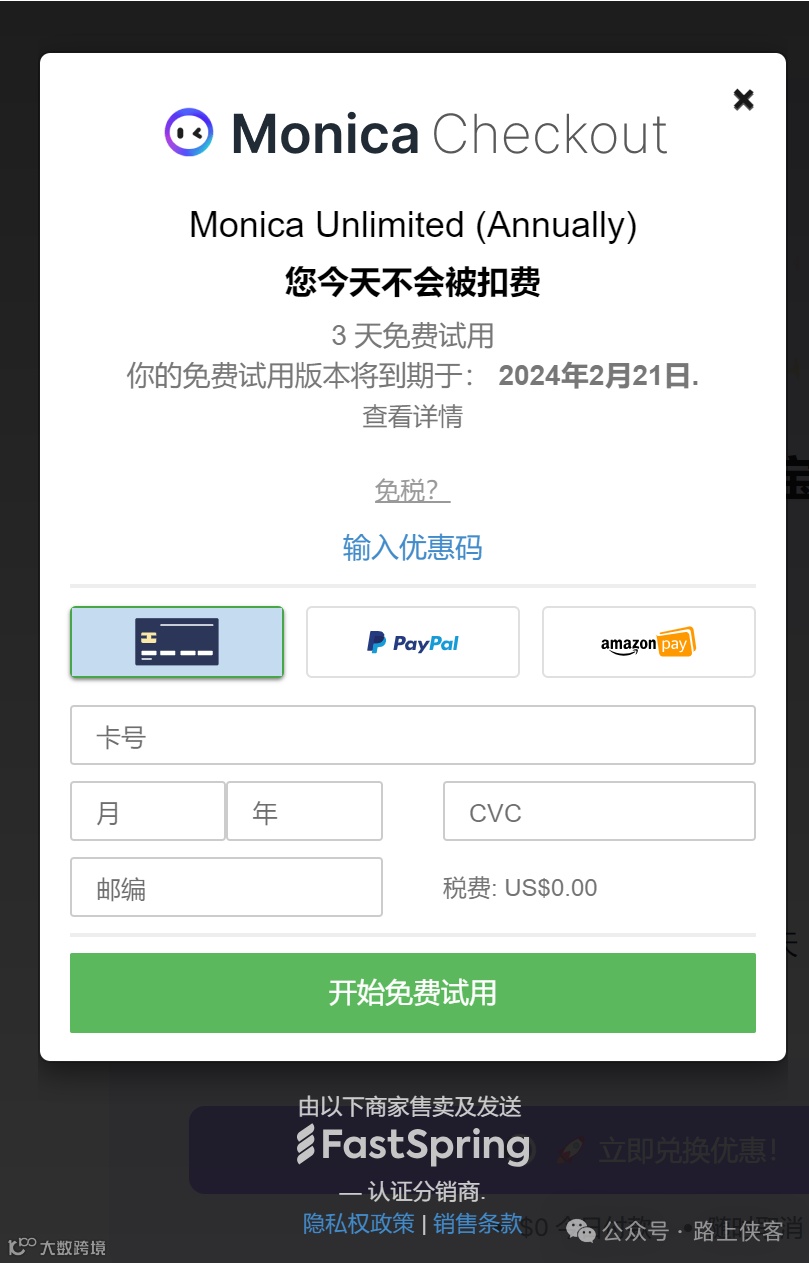 需绑定海外信用卡或Paypal。
