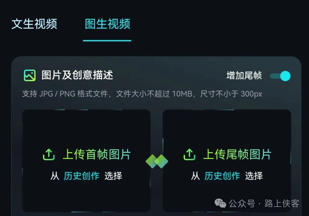 图生视频增加了收尾帧的添加。(文生视频中没有这项功能,移动手机端也还没有扩展这项功能)