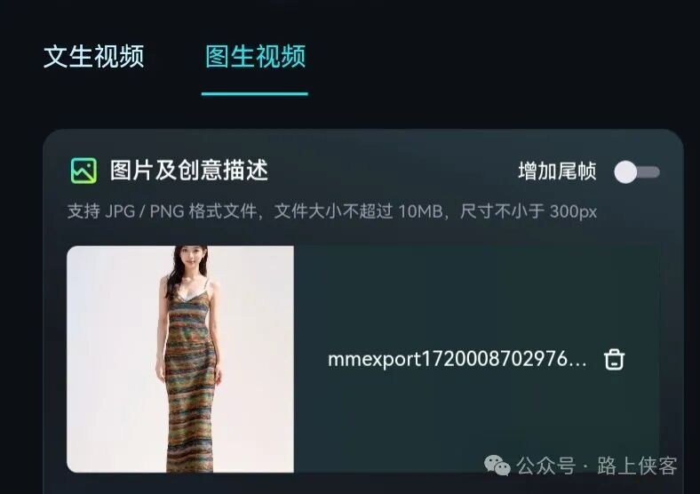 文生图这边我们上传一张之前商拍AI模特图来生成动态视频。