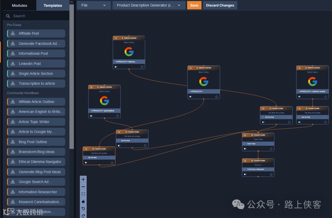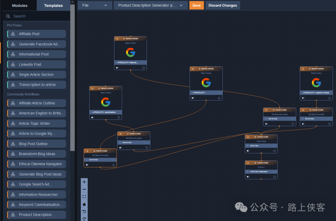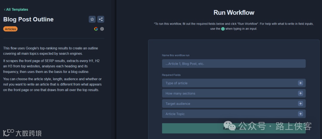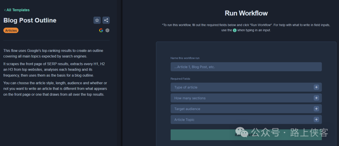 这边有很多工作流模版直接使用。比如这款博文创作工作流。