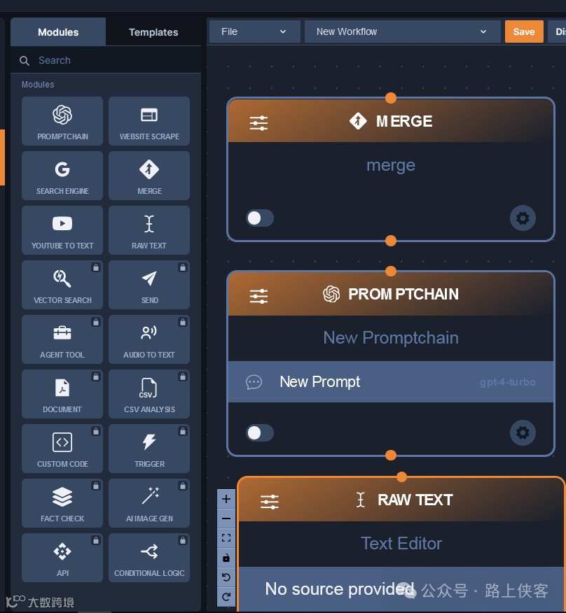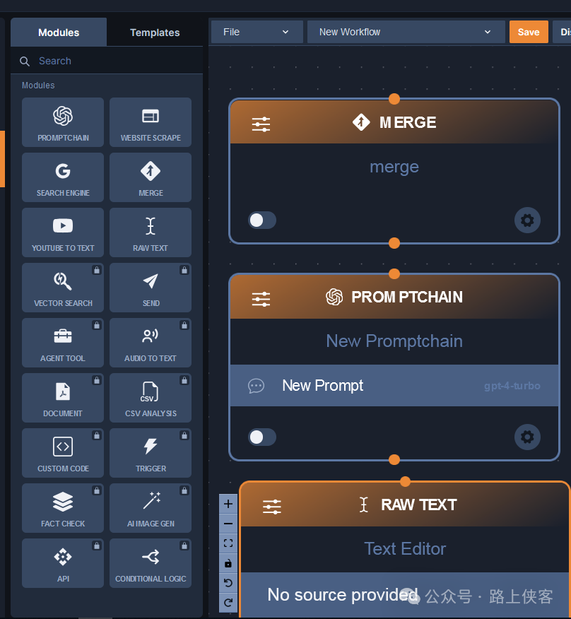 AI工作流的优点在于它的灵活性和可扩展性。它允许用户根据不同的需求定制化流程,从而提高效率和准确性。此外,工作流的可视化配置使得非技术人员也能方便地编排复杂的业务流程。