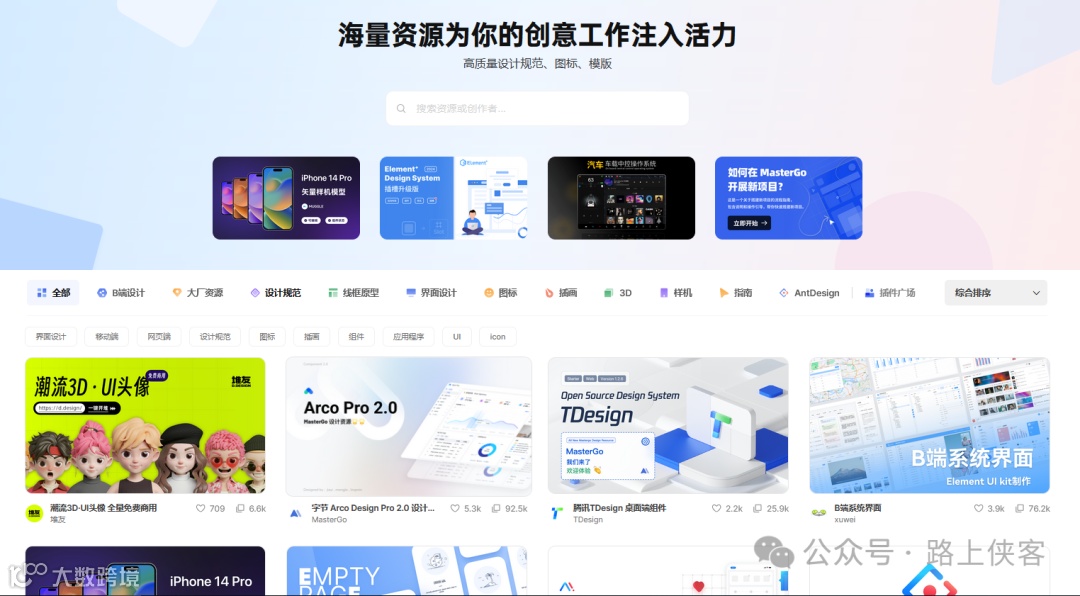 可以直接检索到喜欢的设计稿进入一键复制导入到自己的工作台。