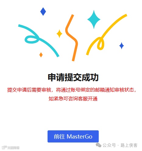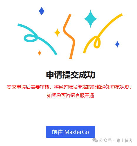 填入邮箱提交信息后,等待审核结果。