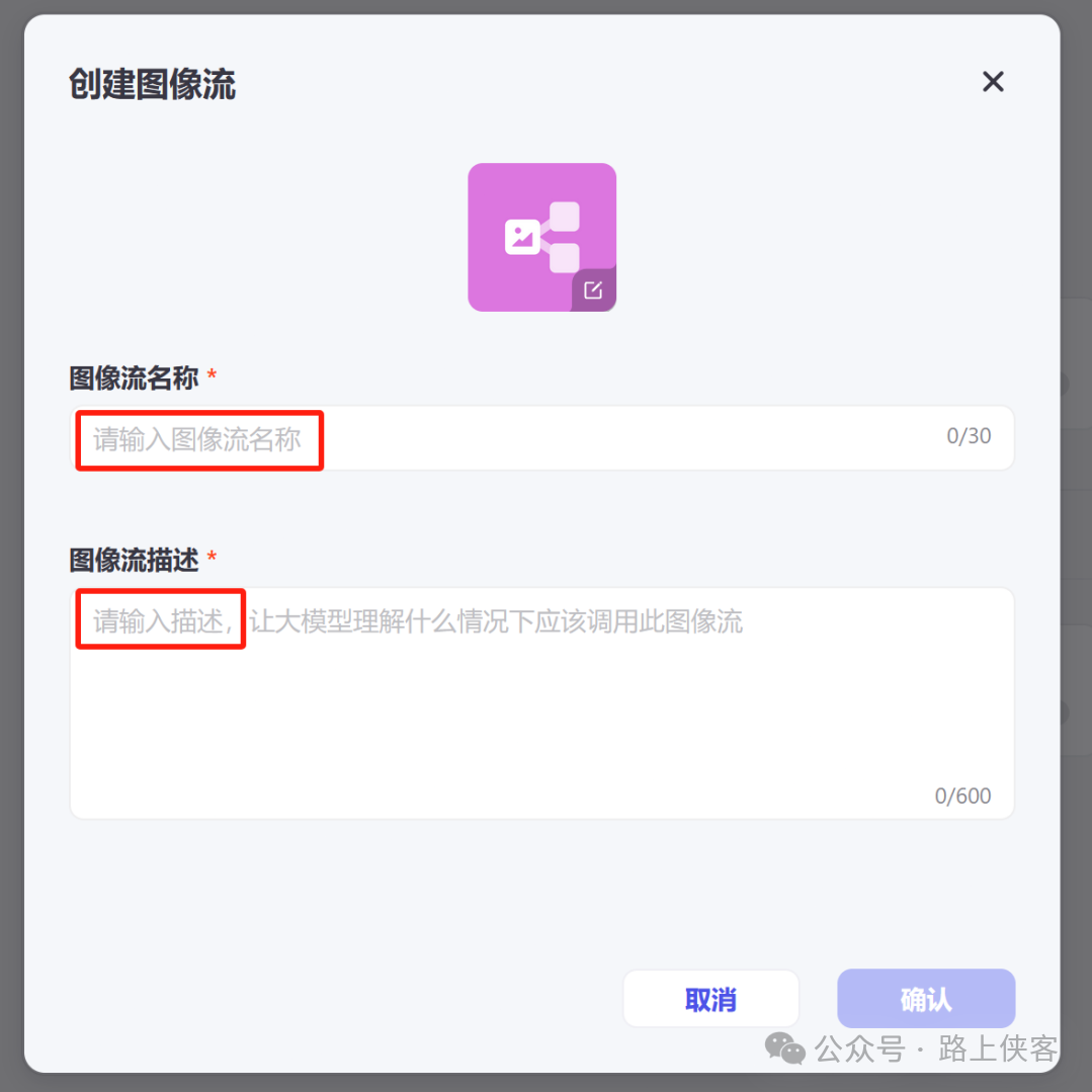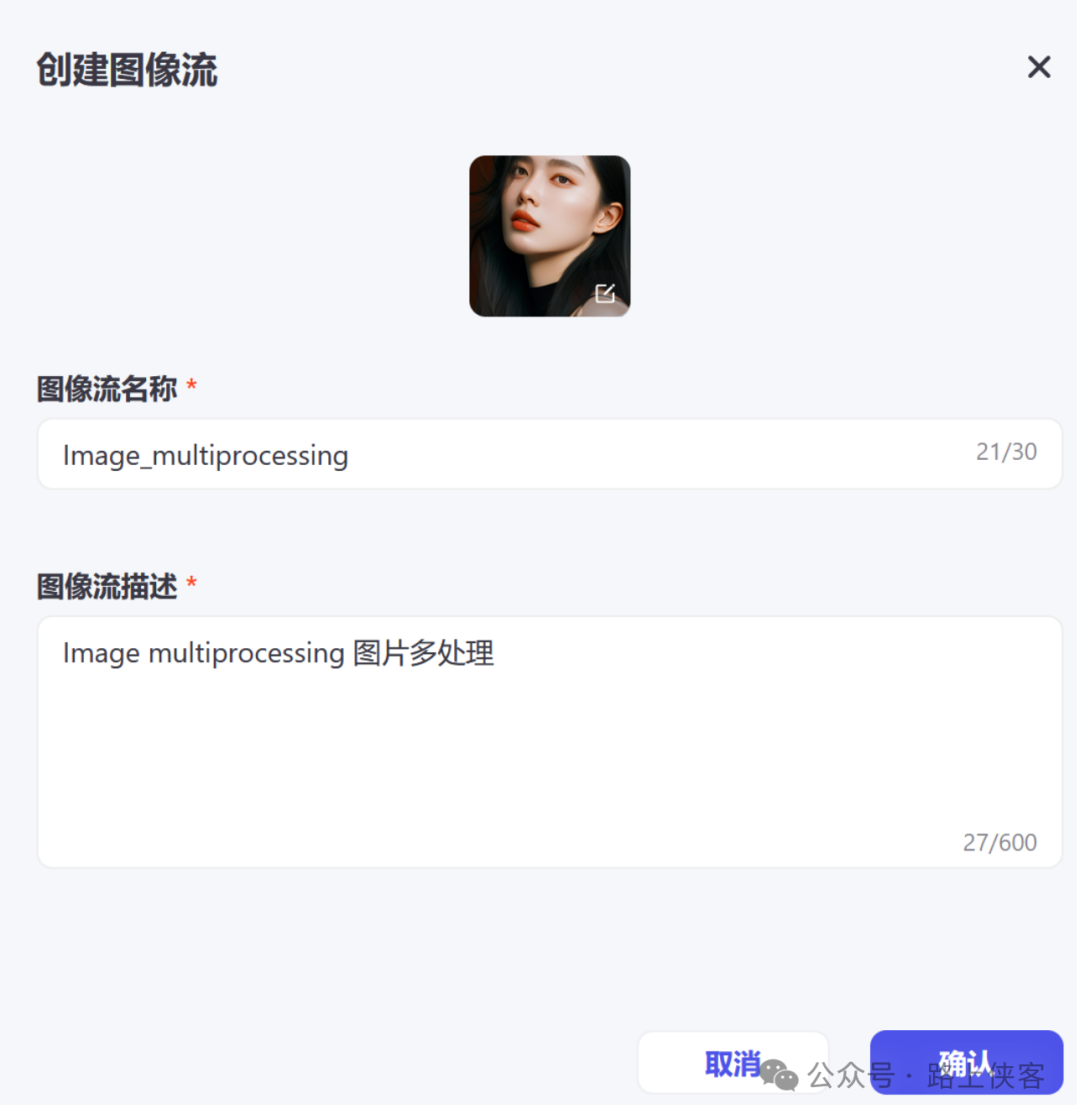 输入创建图像流的名称和描述。