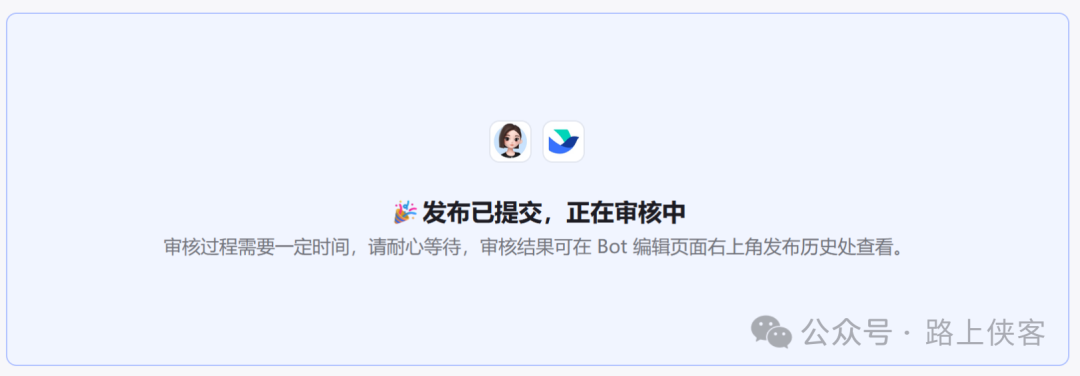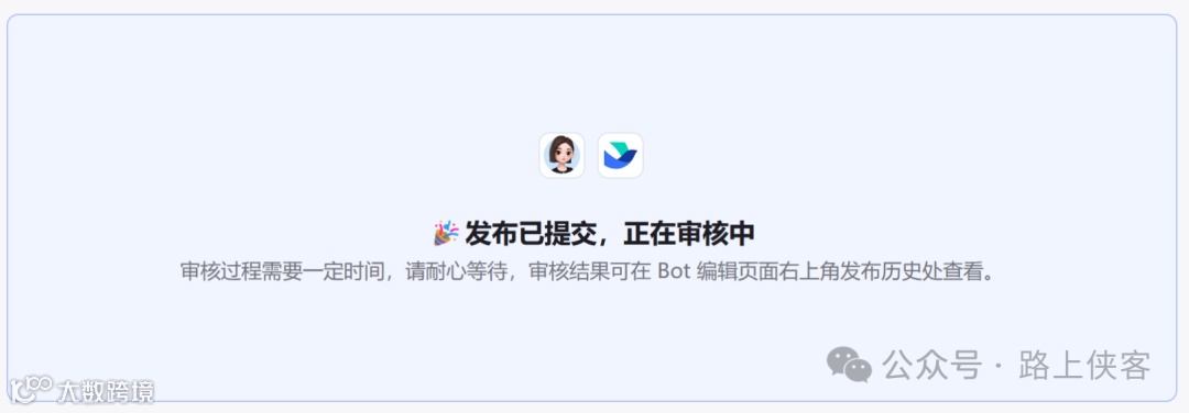 最后等待审核通过即可在这两个渠道中使用刚建的这个图像流机器人了(飞书中需要自己进入管理后台审核,豆包是官方审核自己无须任何操作等待即可)。