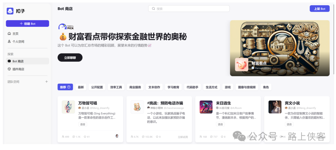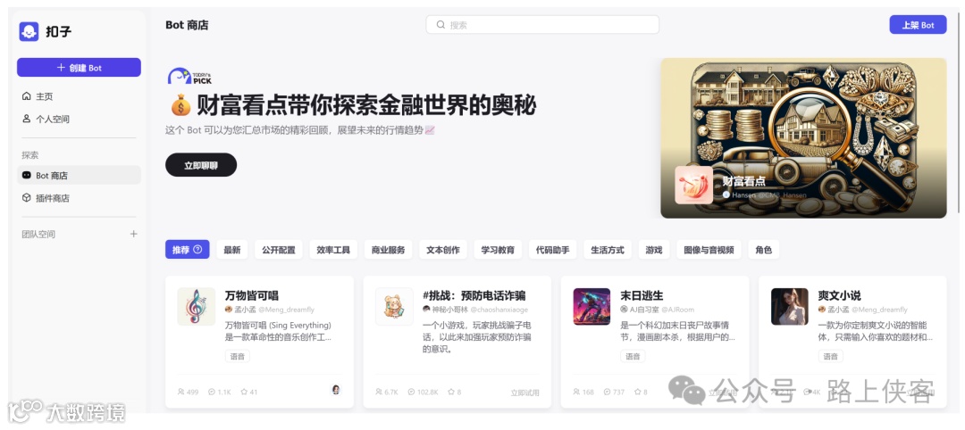 首先还是今天的主角扣子的官方网站: