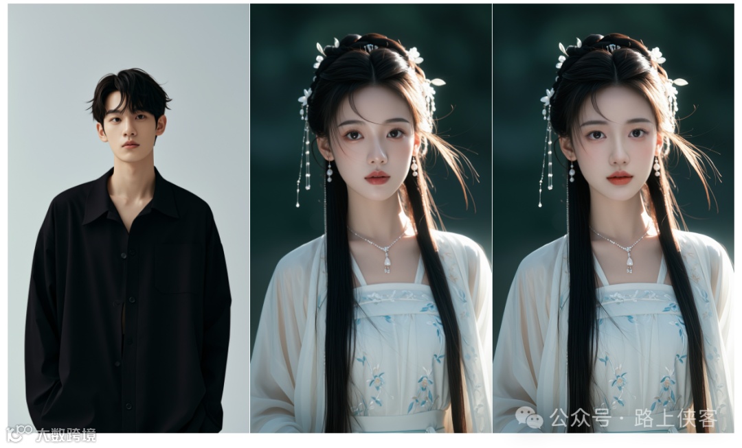 第二步为服装替换。(左图1是换脸生成图,中间图为服装参考图,右图1为替换图)。