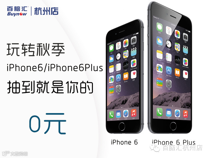 点击本文下方【阅读原文】字样进入官网,马上免费抢iPhone 6!(建议使用电脑登陆百脑汇杭州店店官网,页面更网站操作更方便~)