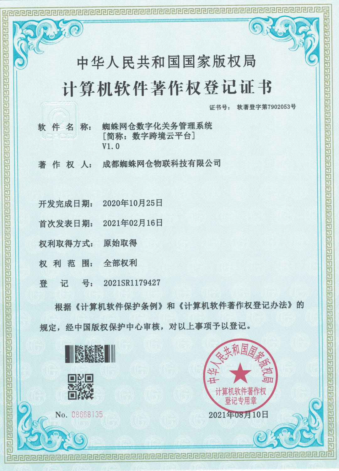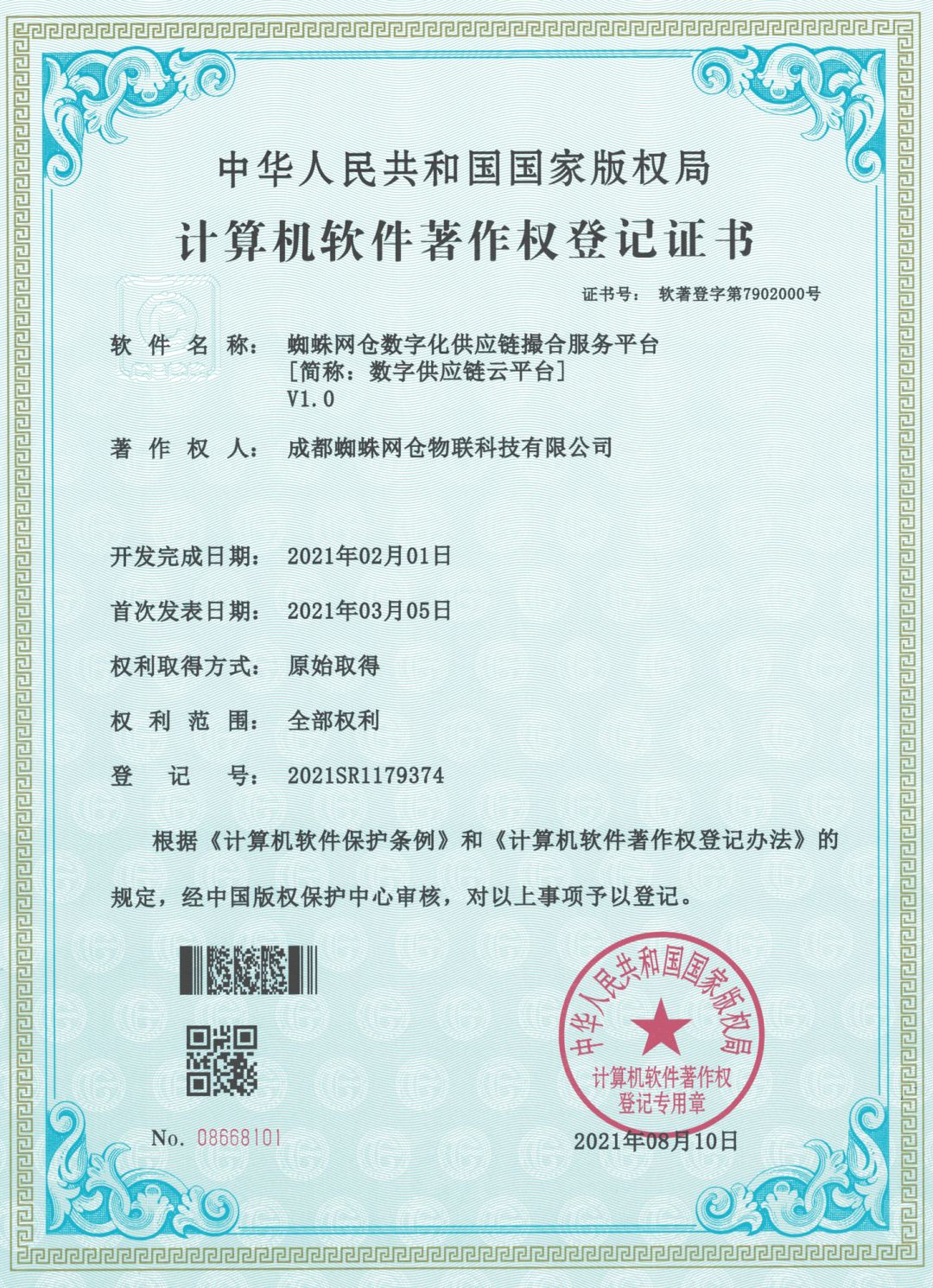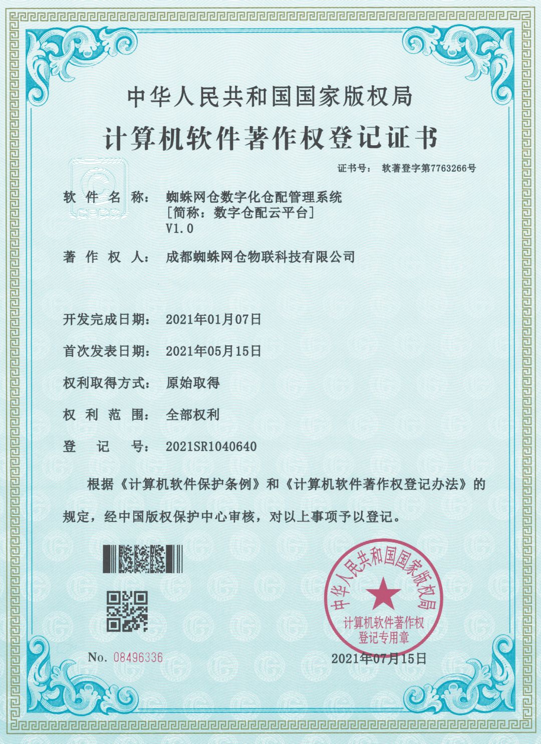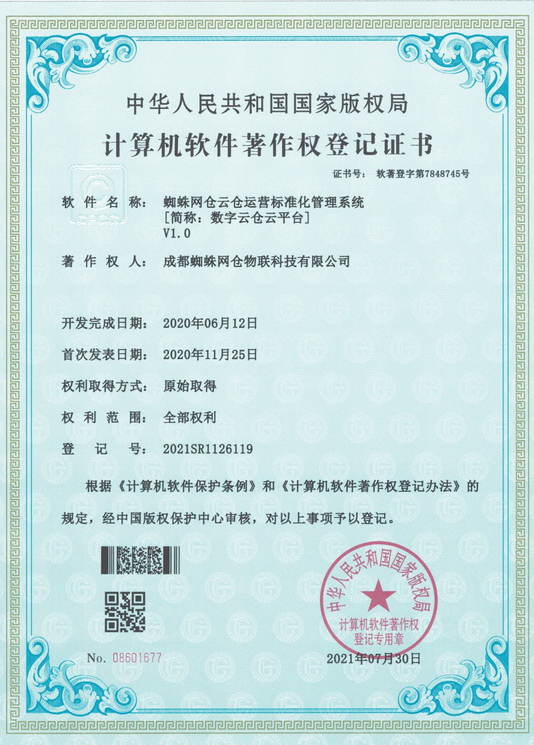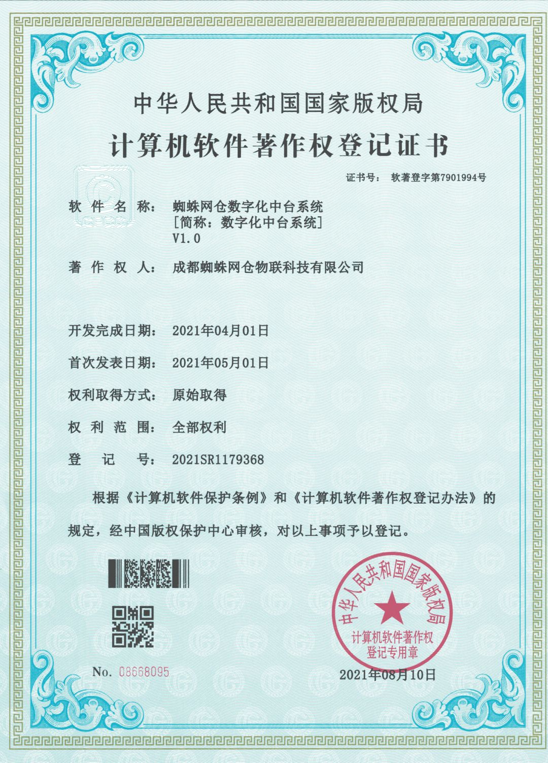 近日,蜘蛛网仓集团研发运维部牵头开发的中台系统、智慧园区、供应链和新零售电商方向十余项软件的核心组件,获得国家版权局计算机软件著作权登记证书。系统核心架构的成形,以及软件著作权的取得是蜘蛛网仓集团在加快信息化建设工作的重要里程碑。
