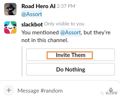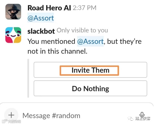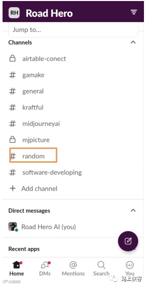 然后我们回到Slack的初始界面,任意创建一个频道。路上侠客这边创建了一个random的频道。
