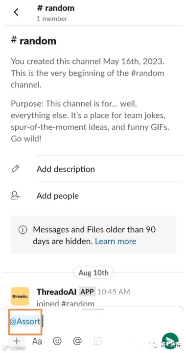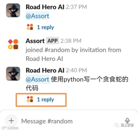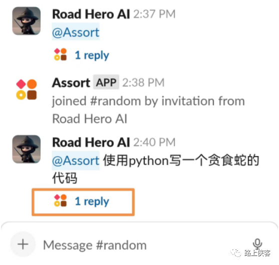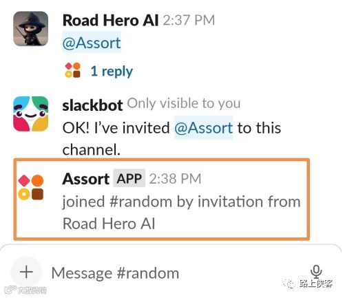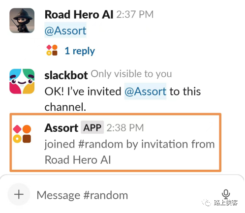 到这边Assort应用已成功加载进入这个自创建的频道random。