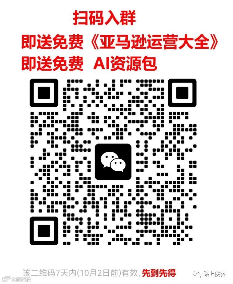 操作上有问题的小伙伴可以加入路上侠客的微信分享群进行沟通(入群后还会立即给到最新免费AI资源包和跨境资料),谢谢大家的支持。