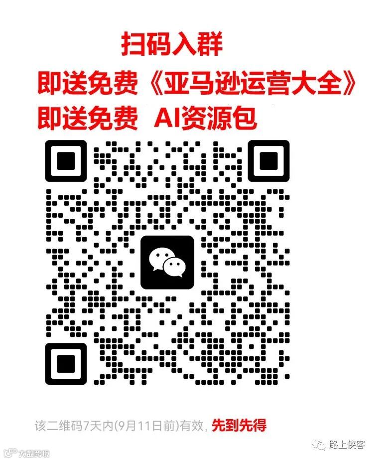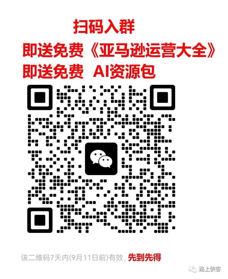 操作上有问题的小伙伴可以加入路上侠客的微信分享群进行沟通(入群后还会立即给到最新免费AI资源包和跨境资料),谢谢大家的支持。