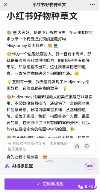 我们可以在WPS AI提供了多种应用场景的模版供你选择,我们这边选定一个小红书写作模版。