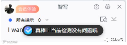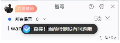 可以进行划词校验错误。路上侠客输入“I wants go to shcool.”
