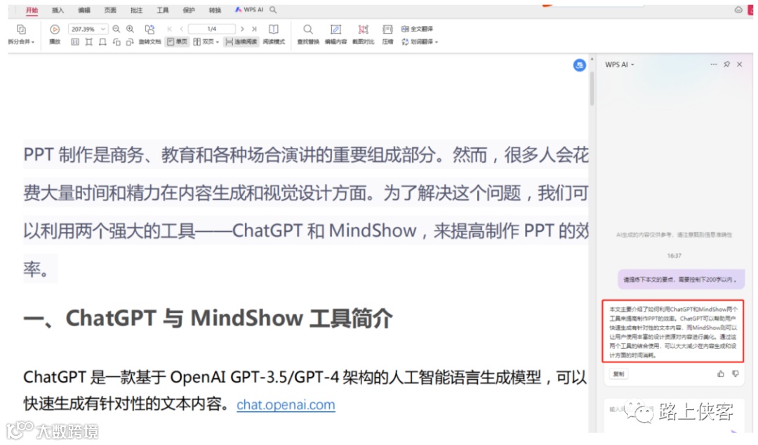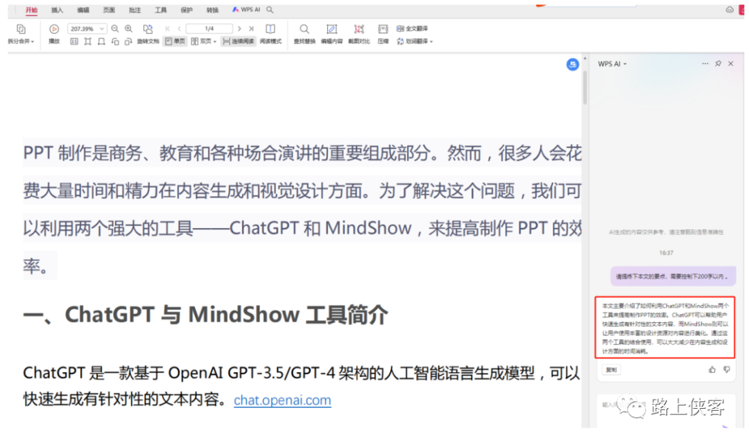 在PDF中也是同样的好用,我们让AI去进行文章的内容提炼,可以帮我们快速阅读和理解文章大意。