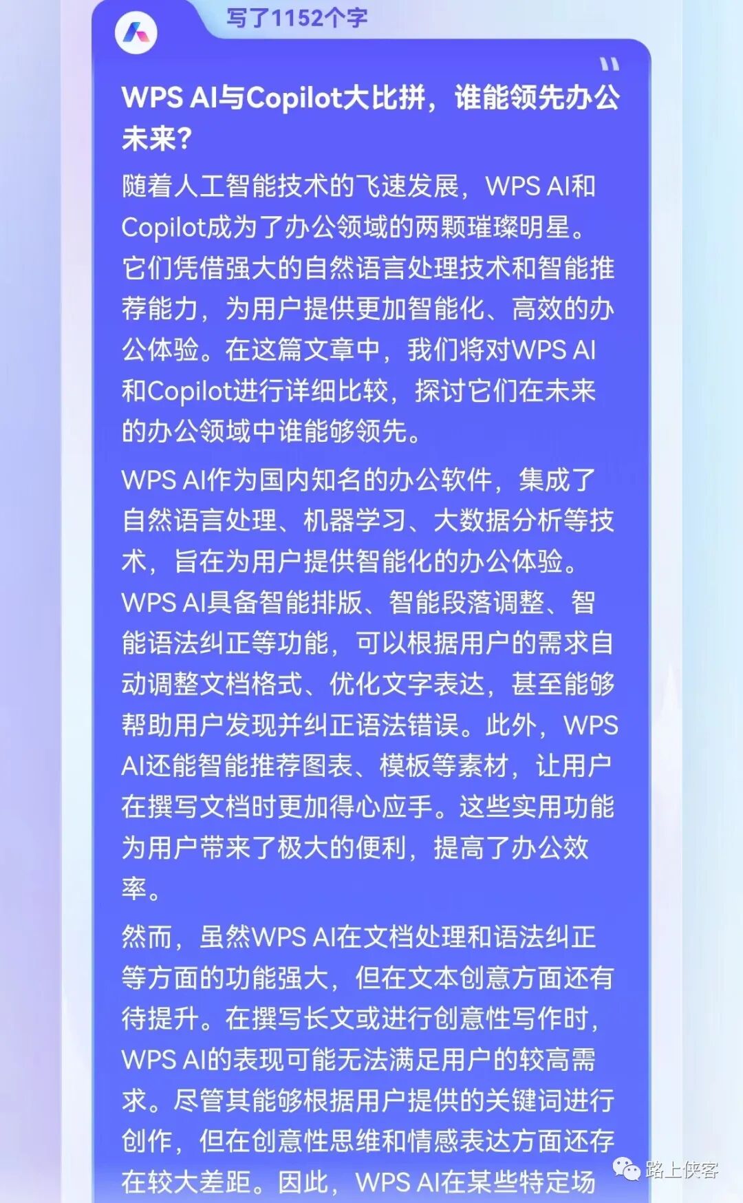 总的来说WPS AI全家桶应用还是很让人欣喜的,在工作便利性和提效上确实很有帮助。搜狗智写这个不知道有无免费版本或测试版,没有测试出很好的效果,也未能让人眼前一亮。