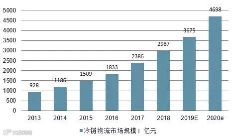 2017年中国冷链物流市场规模为2386亿元,根据预计2020年,市场规模将达到4700亿元,年增速保持在25%左右。