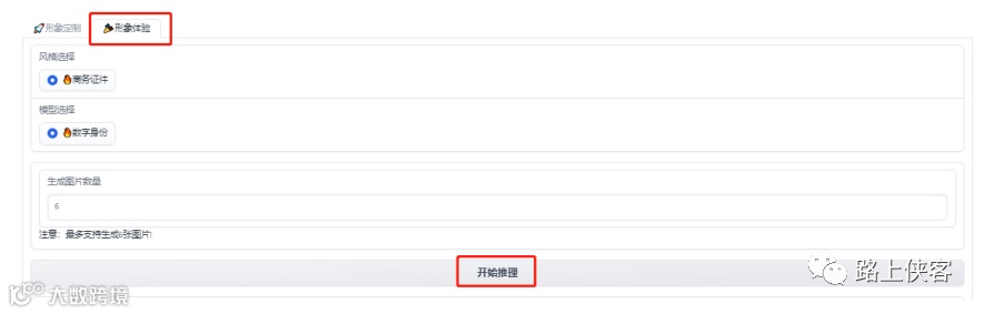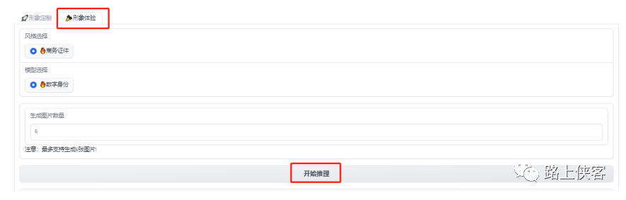 点击置顶标签页的形象体验。点击开始推理按钮。