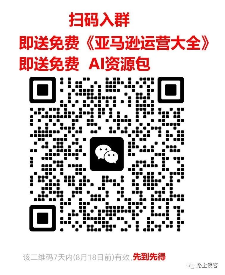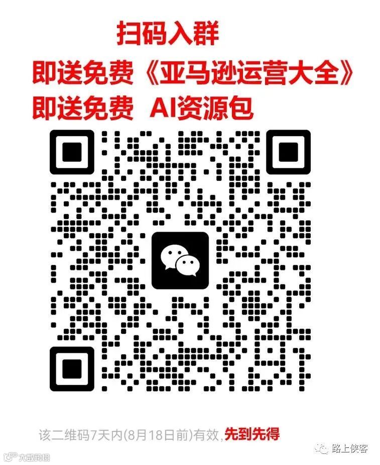 操作上有问题的小伙伴可以加入路上侠客的微信分享群进行沟通(入群后还会立即给到最新免费AI资源包和跨境资料),谢谢大家的支持。