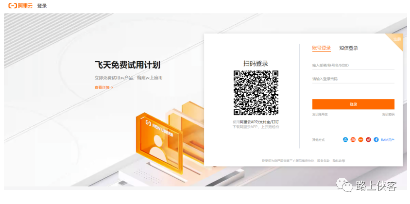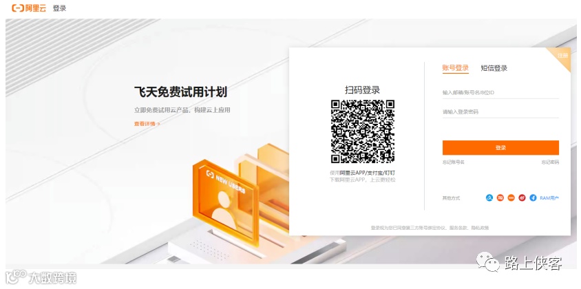 需要使用阿里账户(淘宝账户或手机)注册登录阿里云领取。