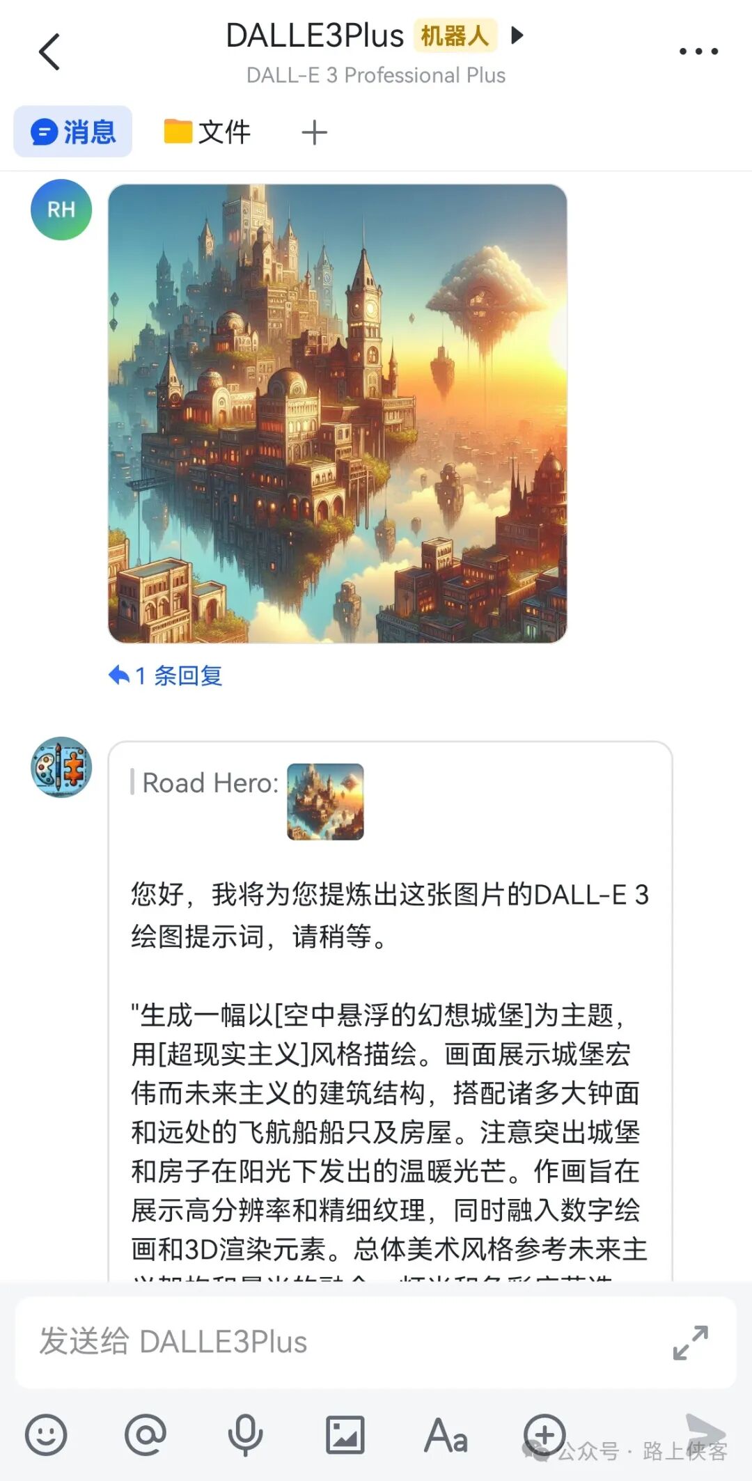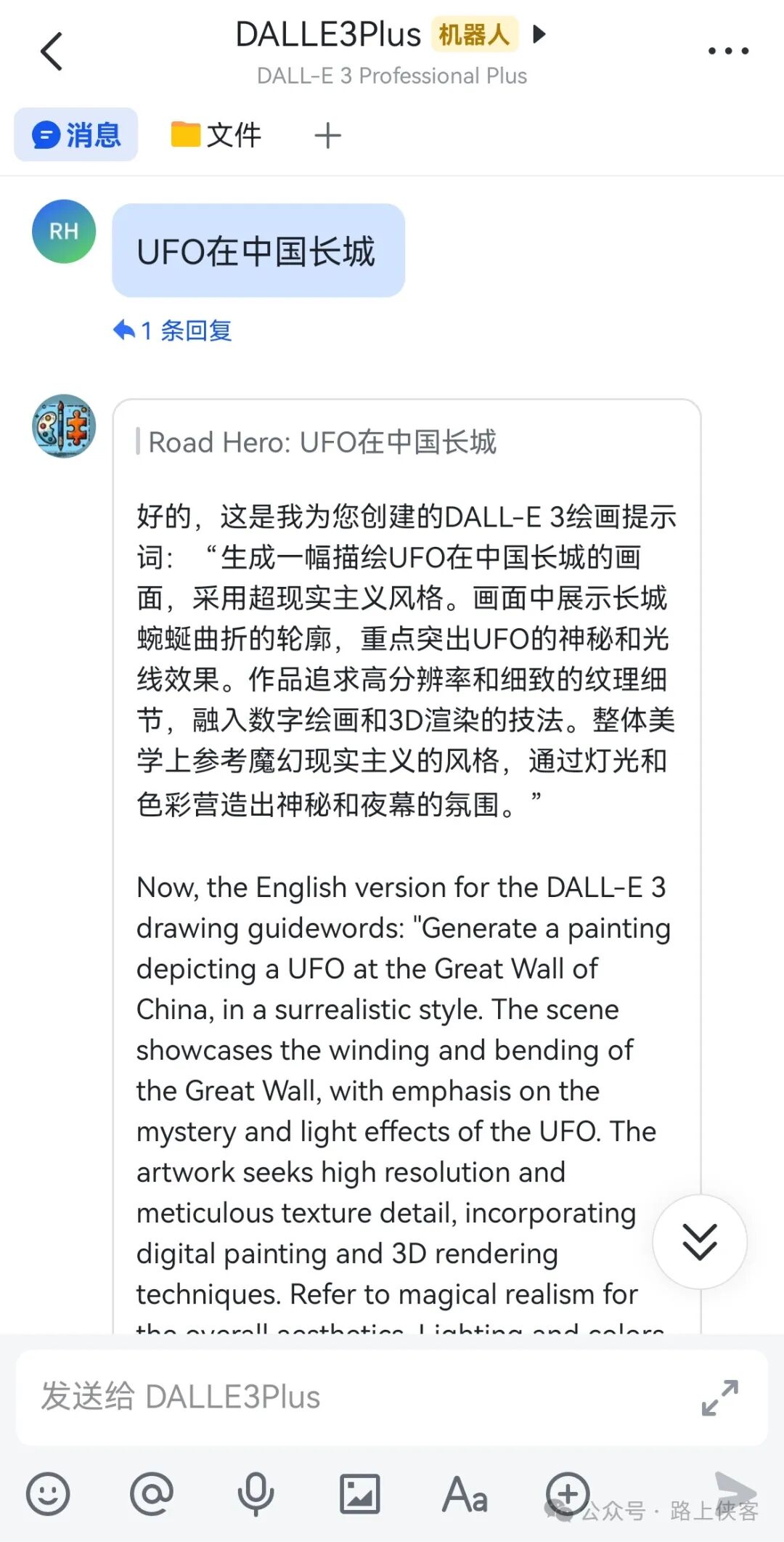 现在立刻加入路上侠客知识星球可免费获得这款AI机器人、《DALL·E 3绘图实战》和扩充案例库。加入后还有更多福利,除了这款AI机器人还可以获得其他多款AI定制机器人免费领取使用(基于GTP4、DALLE3模型和私有专业知识库反复打磨训练制作),持续更新中。