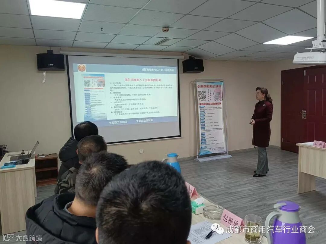 成都市商用汽车行业工会联合会主席、商会秘书长彭锎为大家详细宣讲了企业建立工会的重要性、货车司机加入工会的好处、入会流程、司机之家的服务功能等,希望让更多的货车司机加入工会,享受到工会的服务与关爱。
