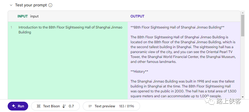 我们再来测试一个路上侠客早先时间用于自媒体文案的AI Prompt-旅游类型的文案。