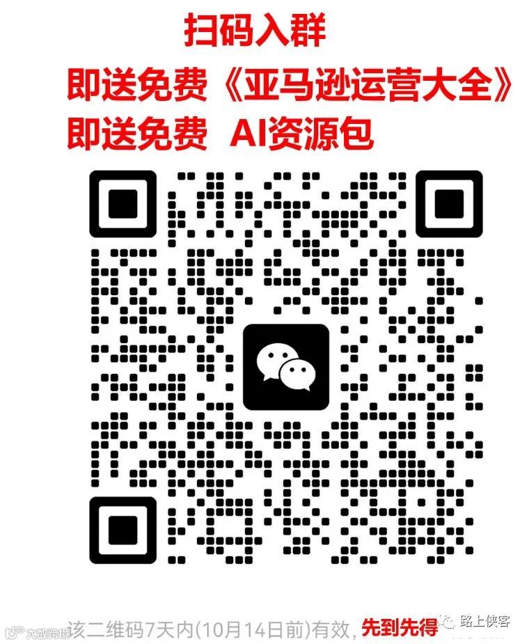 操作上有问题的小伙伴可以加入路上侠客的微信分享群进行沟通(入群后还会立即给到最新免费AI资源包和跨境资料),谢谢大家的支持。