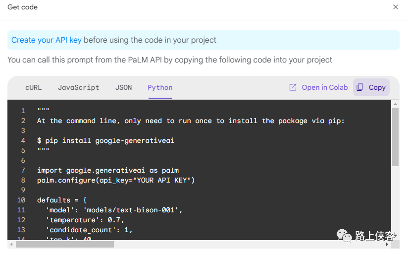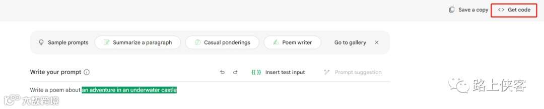 点击右上角的Get Code选项可以查看和复制实行Prompt的代码。