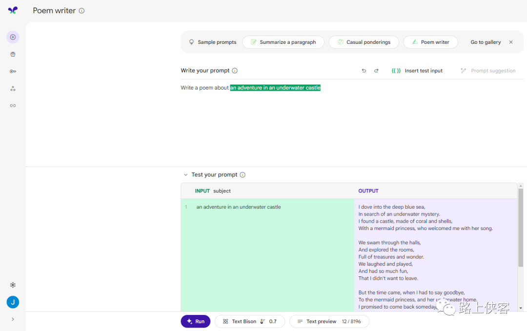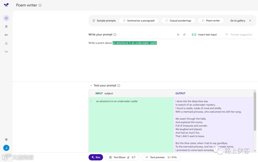 目前还不能很好支持中文,我们以英文为例,先看下Google提供的模版-Poem writer写诗助手。