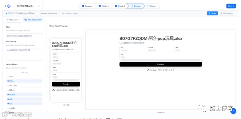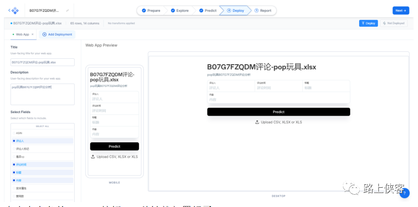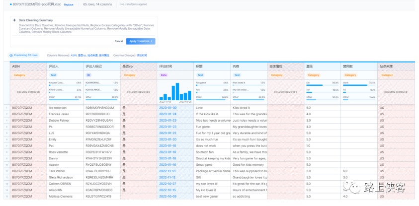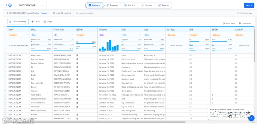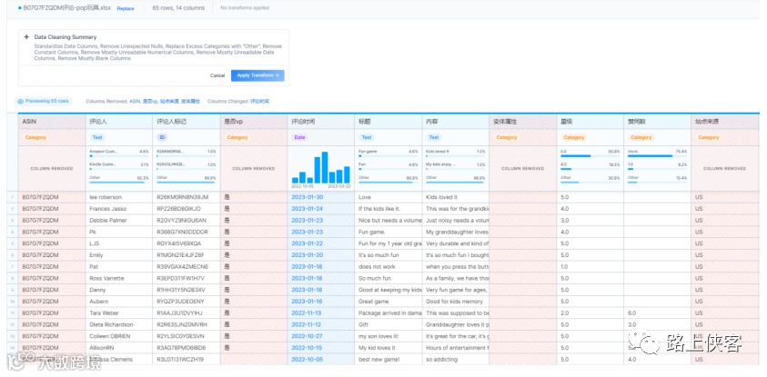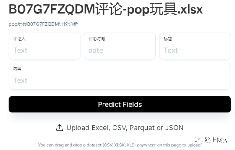 上传自己的数据,路上侠客上传了一份之前收集的亚马逊pop it玩具产品的评论数据。