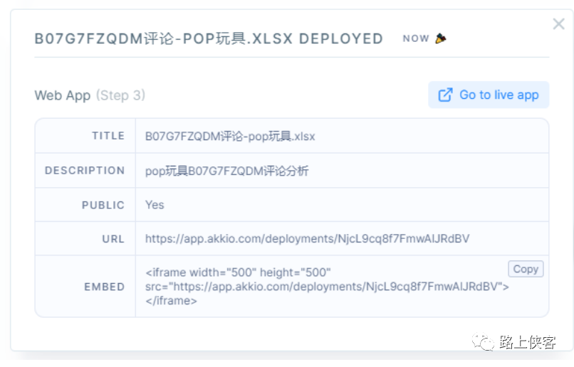 大家可以通过这个网页地址查看:URL:https://app.akkio.com/deployments/NjcL9cq8f7FmwAlJRdBV