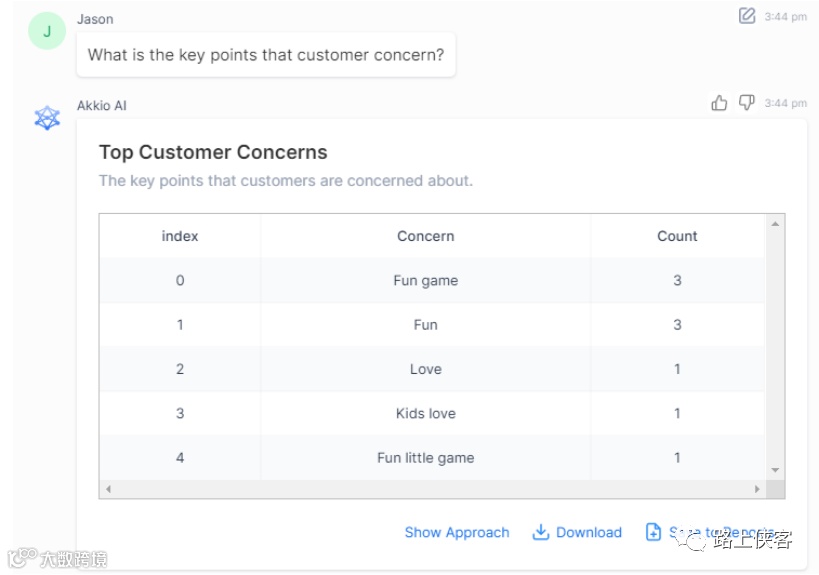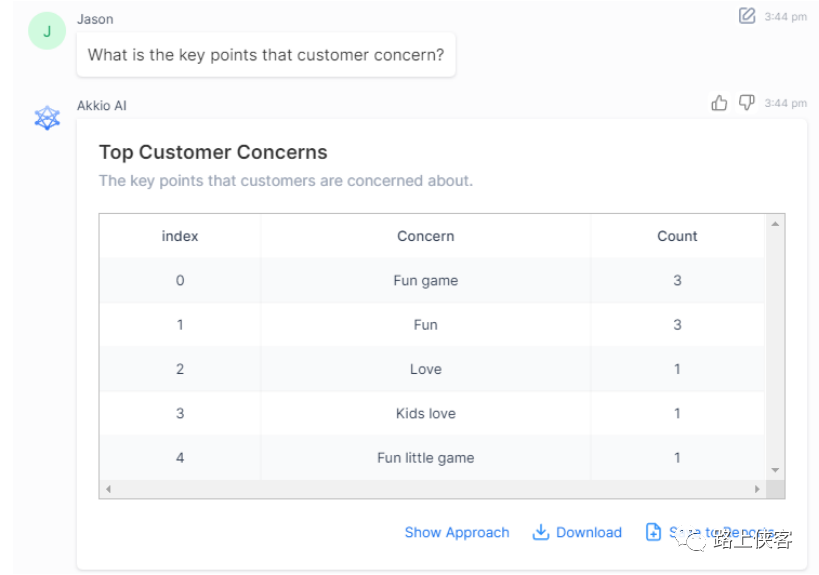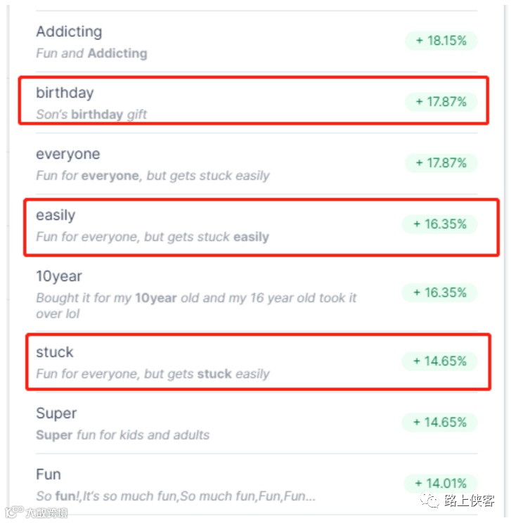 当被问及客户对这款产品最关注的点时,ai给到了关键词频统计。可以看到孩子对于这款游戏的喜爱和趣味性是消费者最为关注的点了。