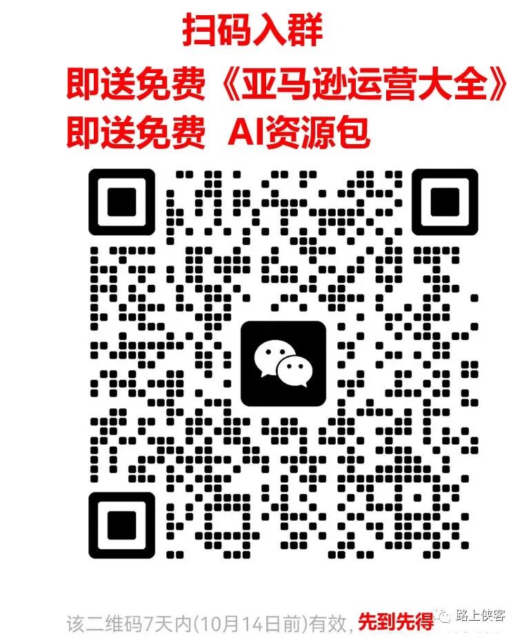操作上有问题的小伙伴可以加入路上侠客的微信分享群进行沟通(入群后还会立即给到最新免费AI资源包和跨境资料),谢谢大家的支持。