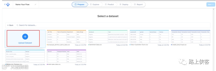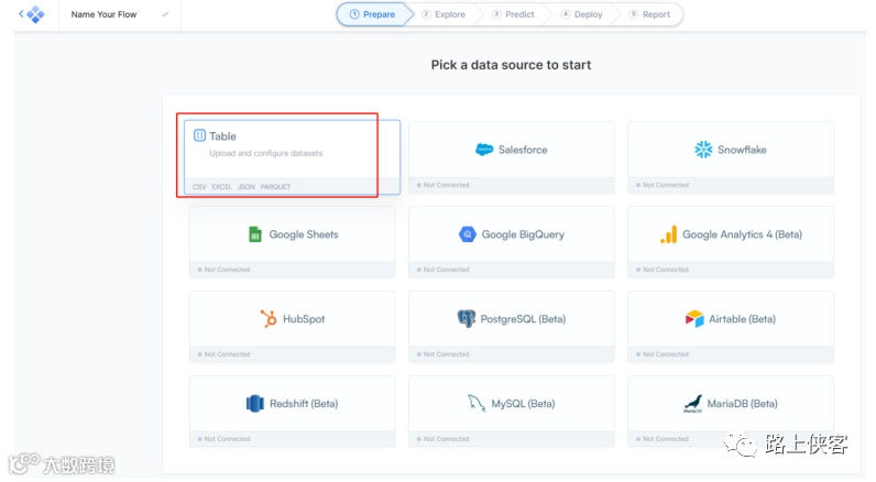 进入主界面可以选择Table表格数据形式上传自己的数据。
