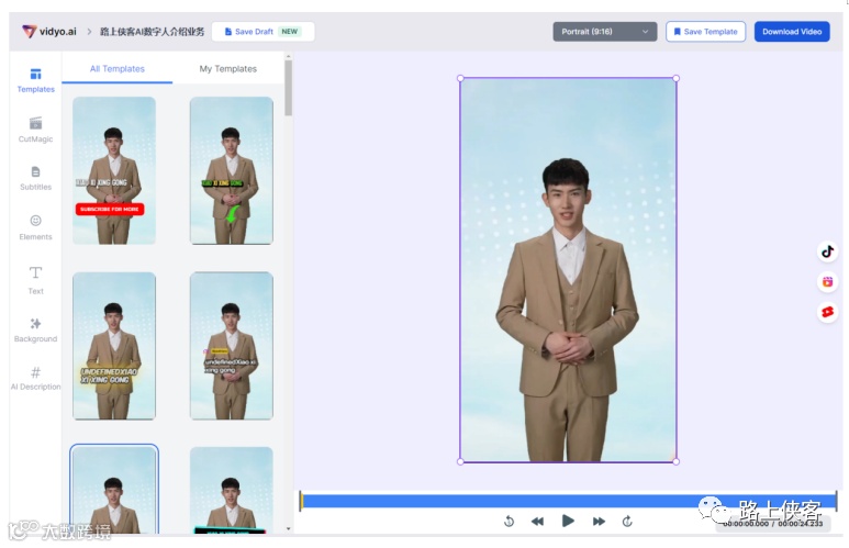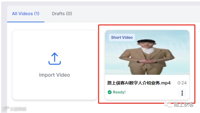 我们把之前路上侠客制作的AI数字人视频导入。文件大小8M,时长20秒,文档格式Mp4。
