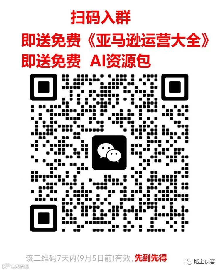 操作上有问题的小伙伴可以加入路上侠客的微信分享群进行沟通(入群后还会立即给到最新免费AI资源包和跨境资料),谢谢大家的支持。