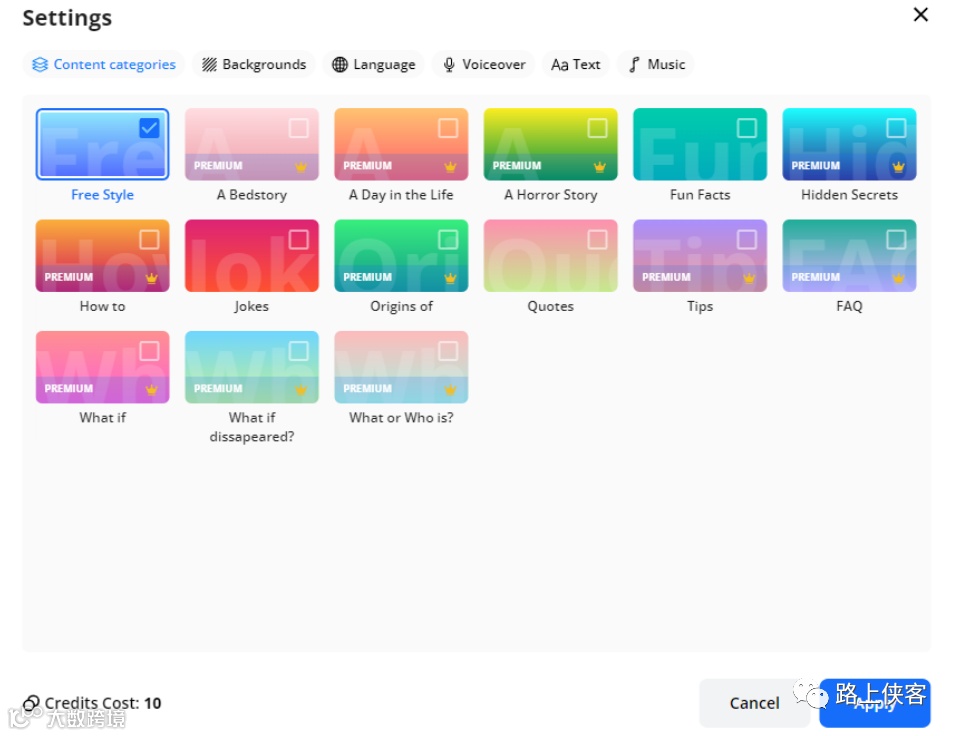 初始给到10个免费使用额度,可以选择免费的视频风格模版。
