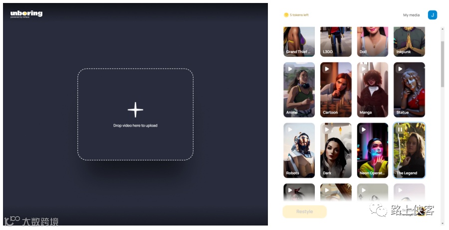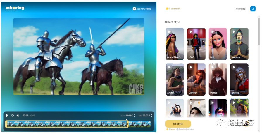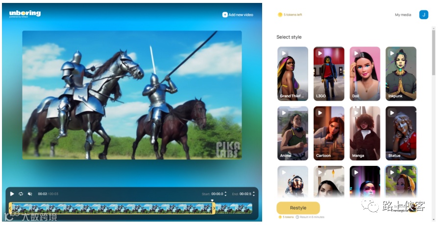 由于免费只能6分钟消耗5个额度,我们把视频长度缩短至额度内生成。点击Restyle按钮。