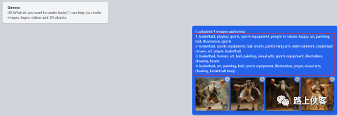 这边我先上传了之前在QQ Midjourney中制作的4张“吴道子风格打篮球”的AI图片。上传完,机器有读图功能把每张图片的描述给呈现出来了。