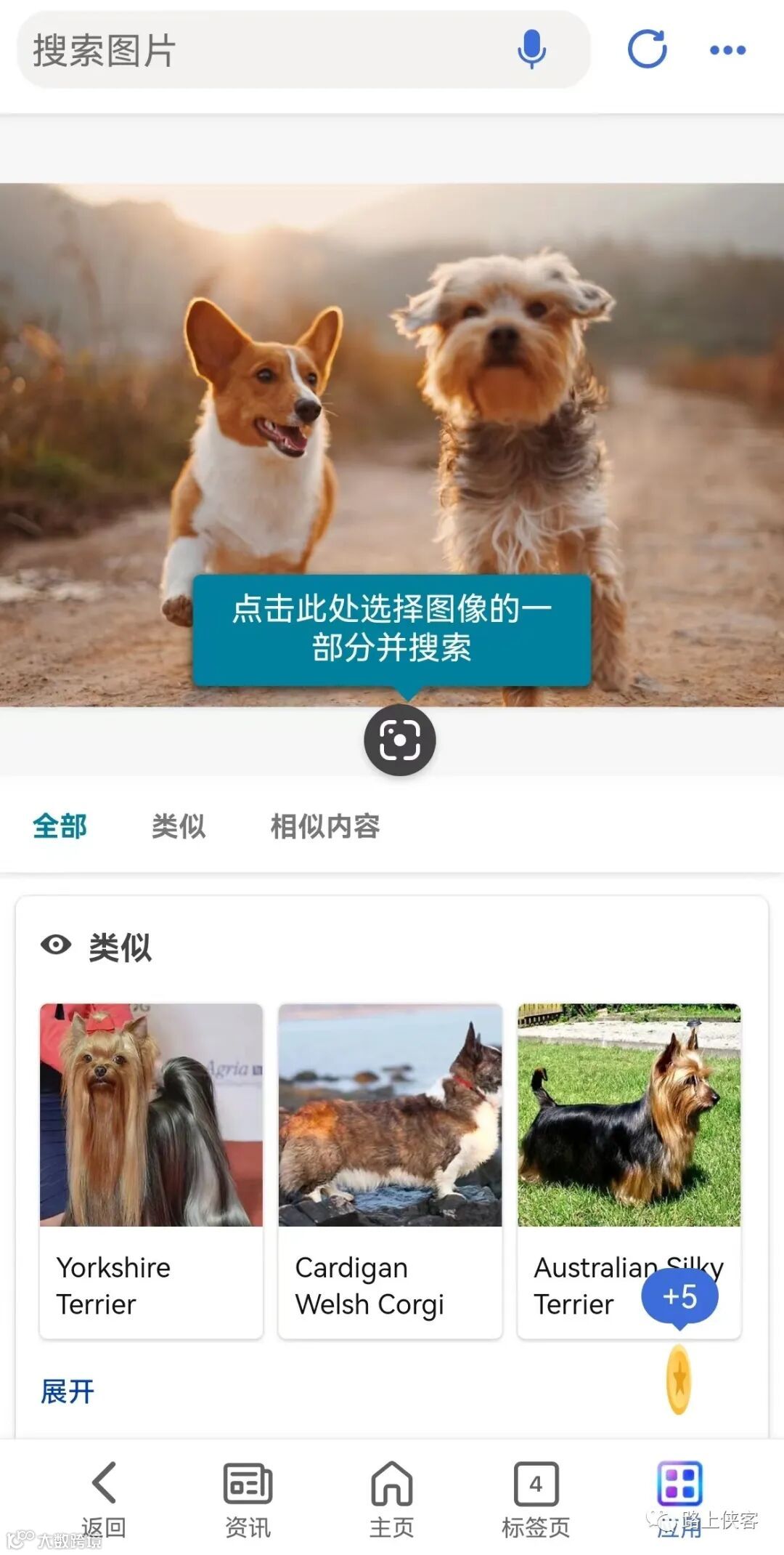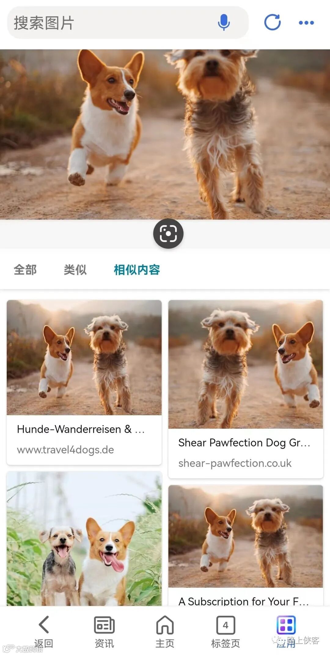 如果点击相似内容项的话,它给到更多相关的类似图片出来。有点像机器学习后的图片识别。
