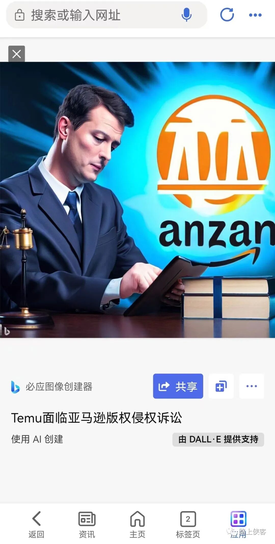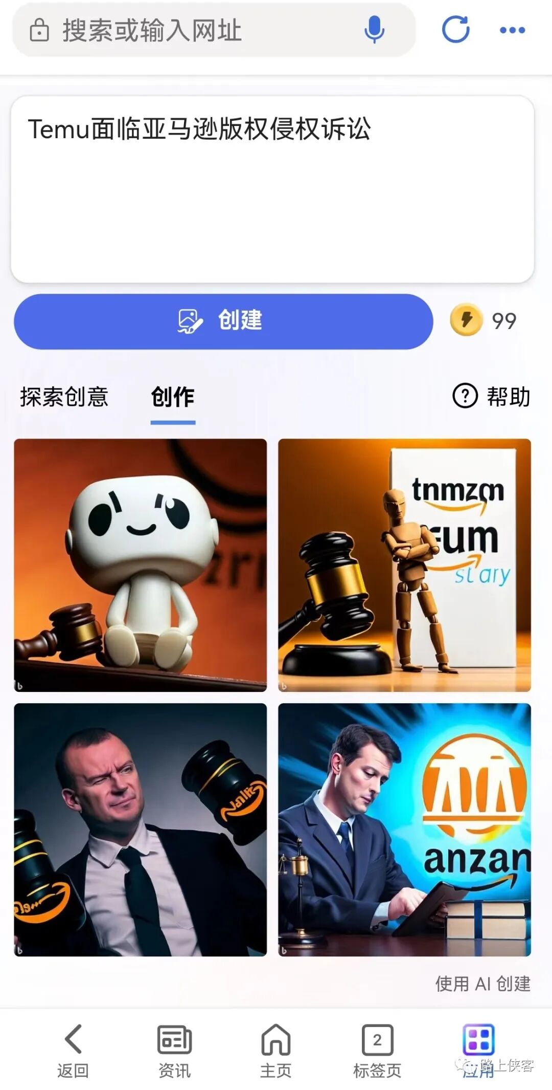 我们在手机APP端试试这个AI绘图器。还是围绕这个Temu侵权的主题展开。